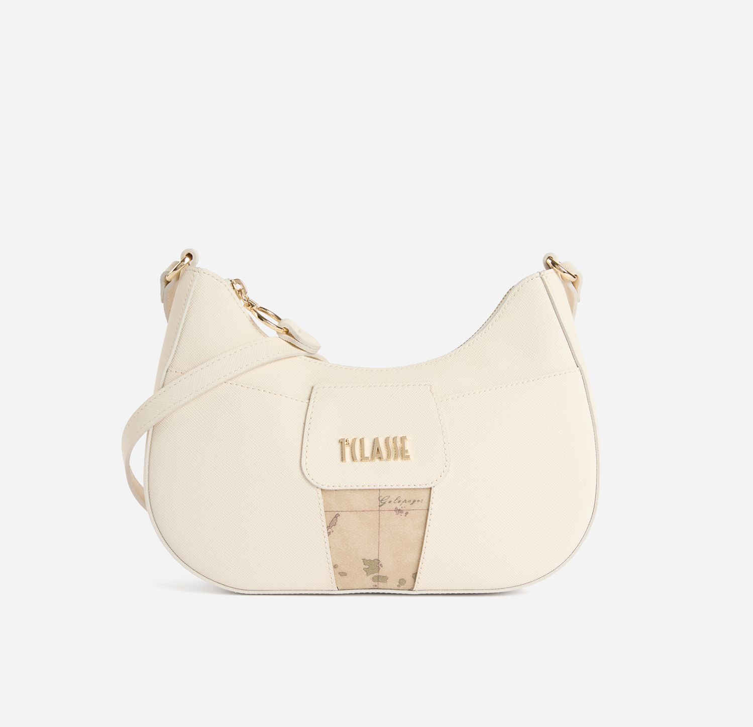 • Tracolla regolabile in tessuto goffrato stampa saffiano
