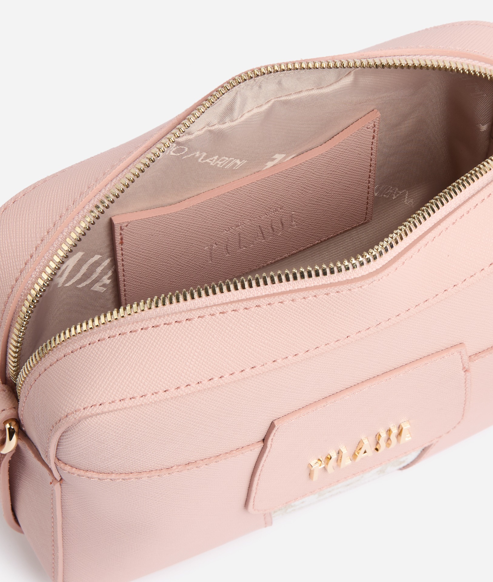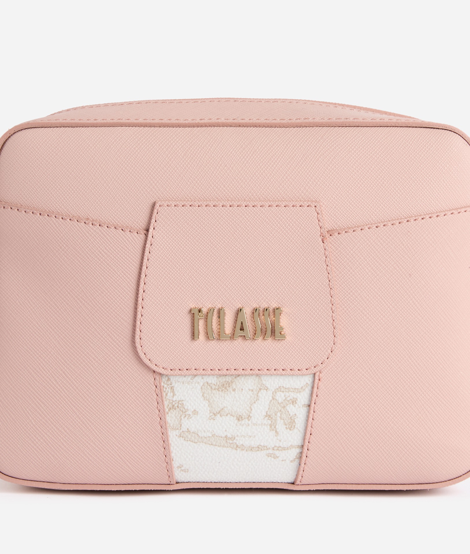 Una variante speciale della tracollina Bloom City, caratterizzata dall'abbinamento del tessuto saffiano Rosa Cameo con l'inserto verticale in tessuto Geo White. Il design richiama lo skyline delle città Australiane, completandosi di una patta trompe-l'oeil con maxi logo 1ᴬ Classe.