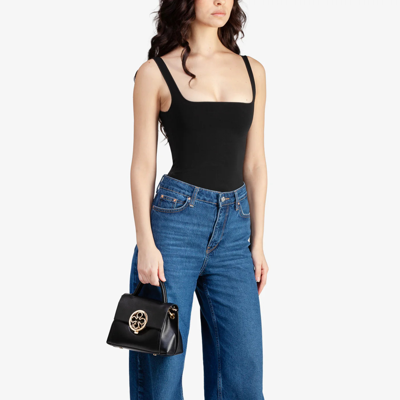 Mini cartella sfoderata con chiusura fiorone V°73. Tracolla personalizzata in nastro.
