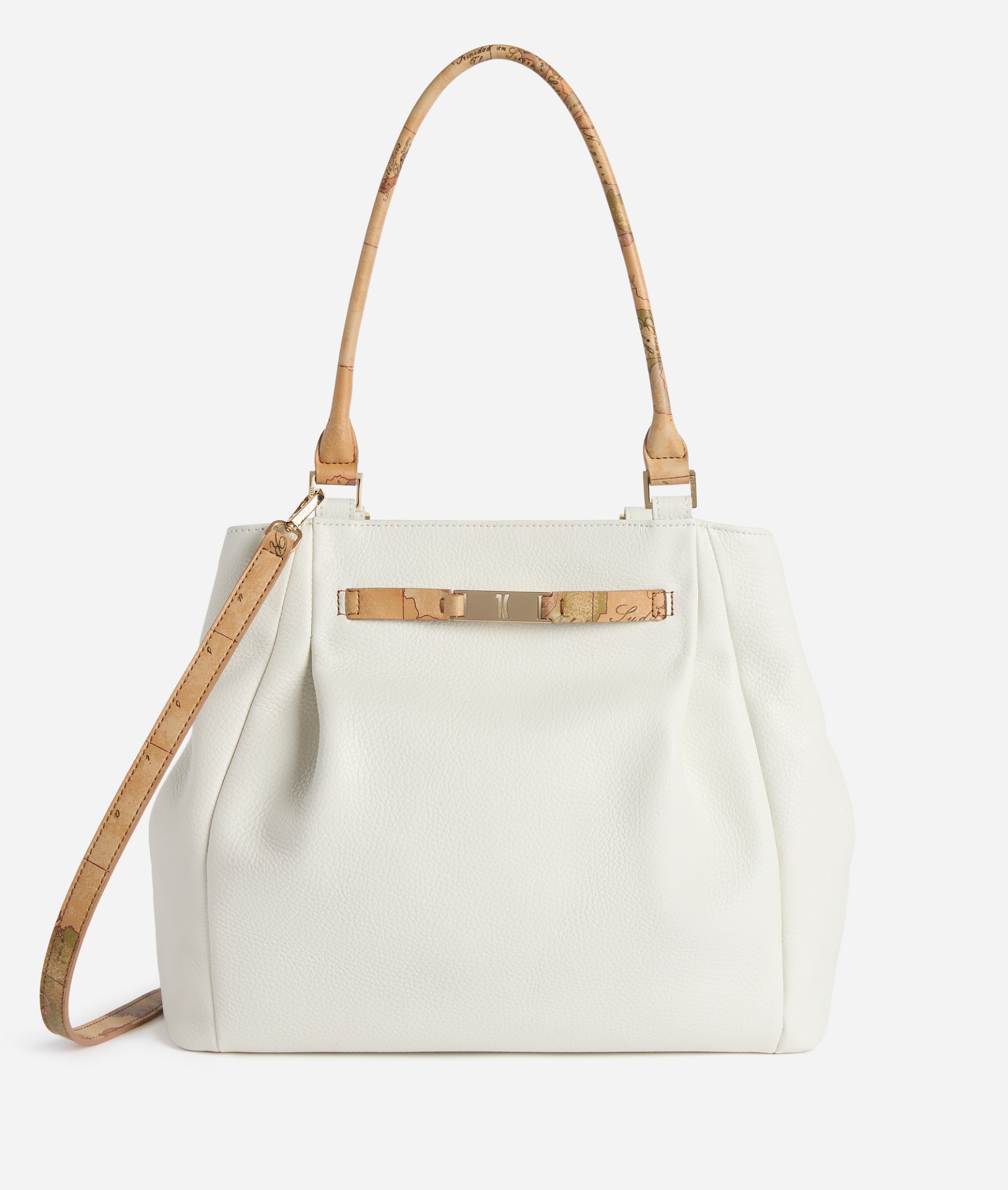 • Tracolla regolabile e rimovibile in tessuto effetto nappa stampa Geo Classic