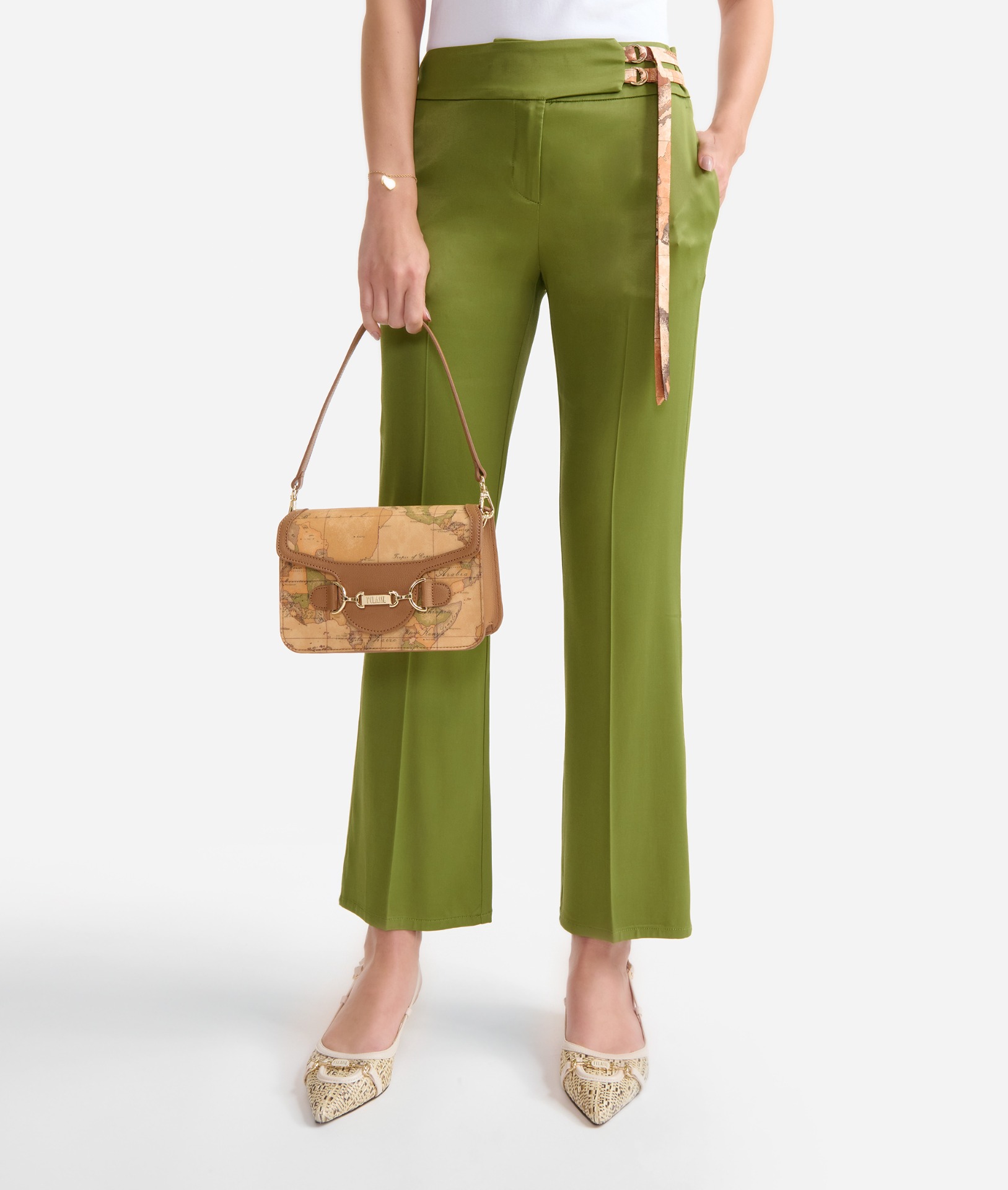 Con il suo fascino senza tempo, il tessuto Geo Classic regala un'allure speciale alla sottospalla Cruise Bag, rifinita da dettagli in pelle granata fine color Cuoio per un look classico e armonioso. Il modello è compatto e strutturato, caratterizzato da una patta sagomata che chiude la borsa inserendosi nel vistoso morsetto oro chiaro con logo 1ᴬ Classe inciso. La borsa si completa di spallaccio e tracolla rimovibili in pelle granata fine offrendo un look versatile, da sfoggiare in città con jeans e bluse o in occasioni speciali con abiti eleganti e décolleté.