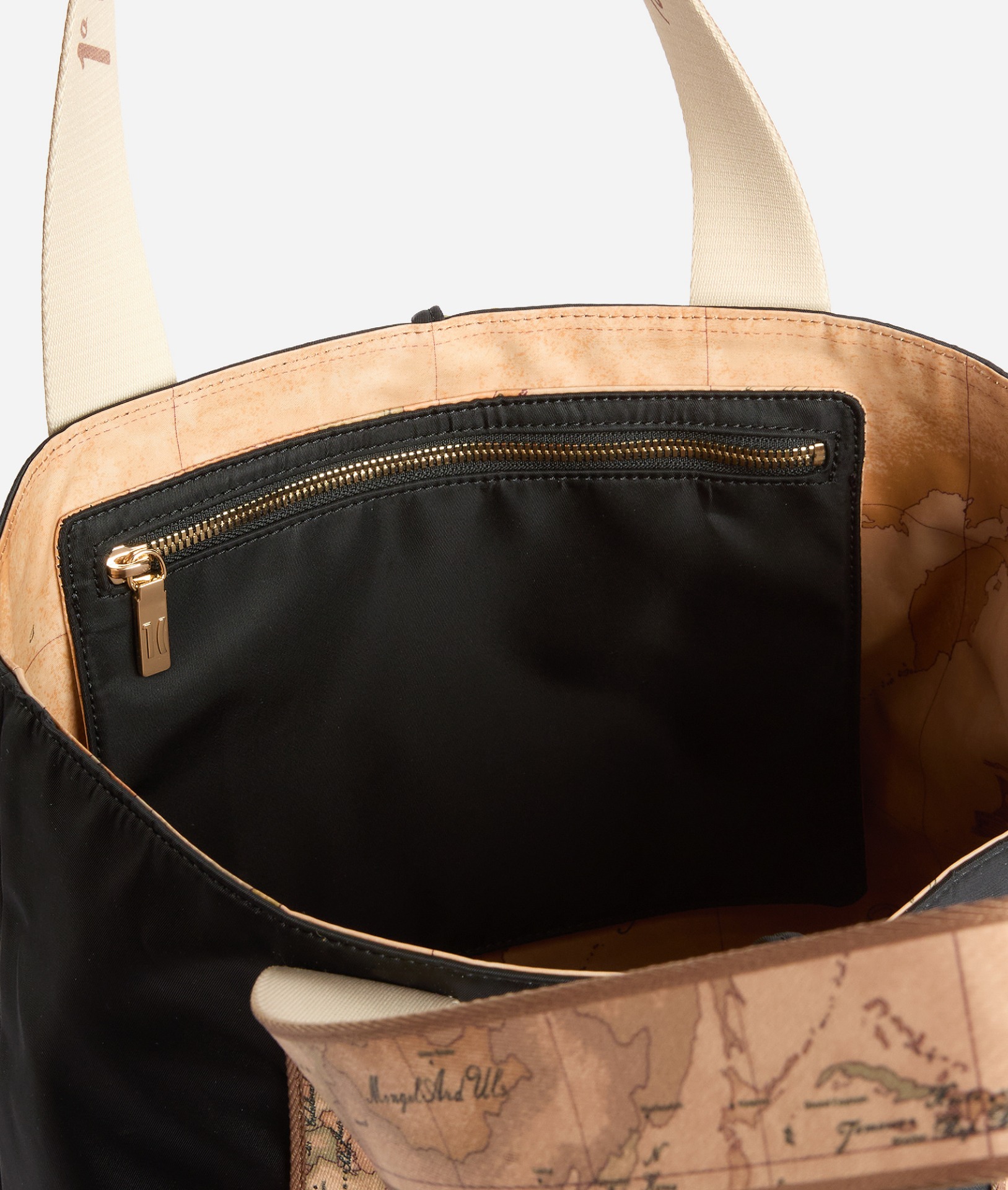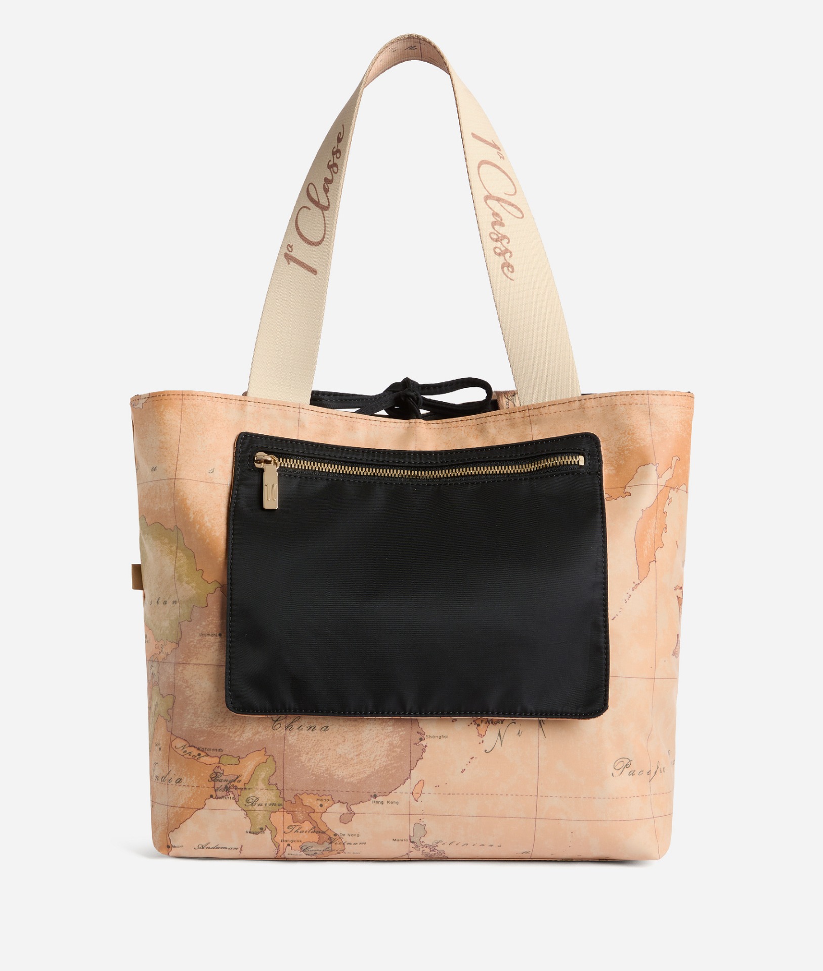 La Dual Bag ti accompagnerà tutta l'estate con praticità e carattere, regalando un volto sempre nuovo ai tuoi look: il lato in nylon è realizzato nei colori di stagione, abbinati al logo 1ᴬ Classe in oro chiaro e ai manici in nastro con stampa Geo Classic. Rivoltando la borsa si può invece sfoggiare l'iconico tessuto soft stampa Geo Classic, con manici logati 1ᴬ Classe e la tasca con zip ad aggiungere un tocco di colore. Completata dalla chiusura con laccetti, è un modello dall'attitude casual e versatile ideale sia per le giornate di shopping sia per i pomeriggi in spiaggia.