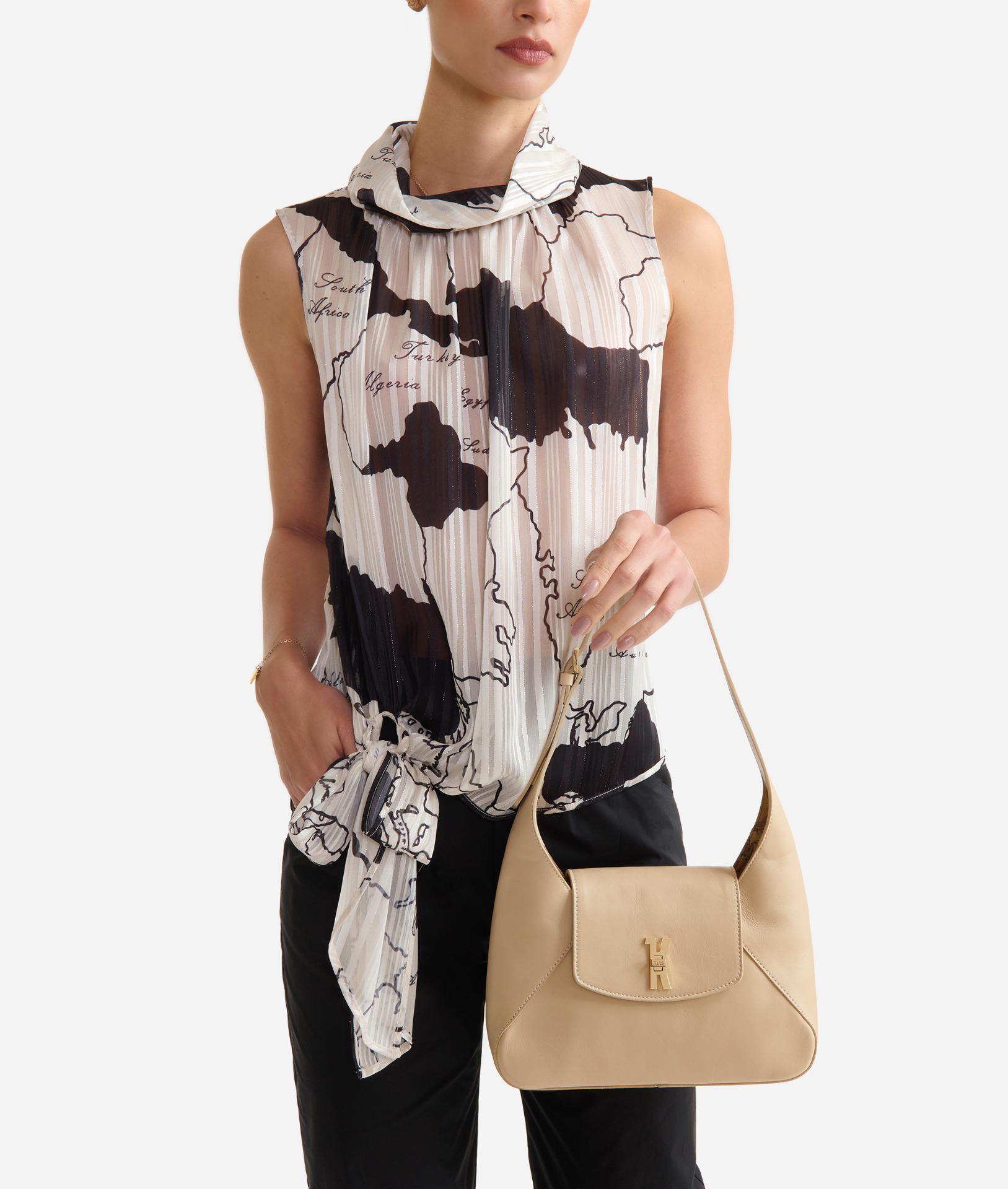 La Kangaroo Bag cattura lo spirito fresco e attuale della Collezione 'Viaggio in Australia' con il suo volume stondato, compatto ma capiente e provvisto di spallaccio regolabile per la portabilità sottospalla. La soffice pelle nappata è lavorata in due inserti laterali a vela che si abbracciano verso il centro, valorizzando la chiusura con patta e mini girello 1ᴬ Classe incastonato nel logo 1C. Sul lato interno dello spallaccio risalta il tessuto effetto nappa nell'iconica stampa Geo Classic: il risultato è un design minimal e rifinito che la rende perfetta sia di giorno che di sera