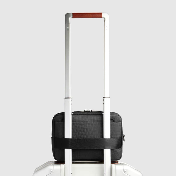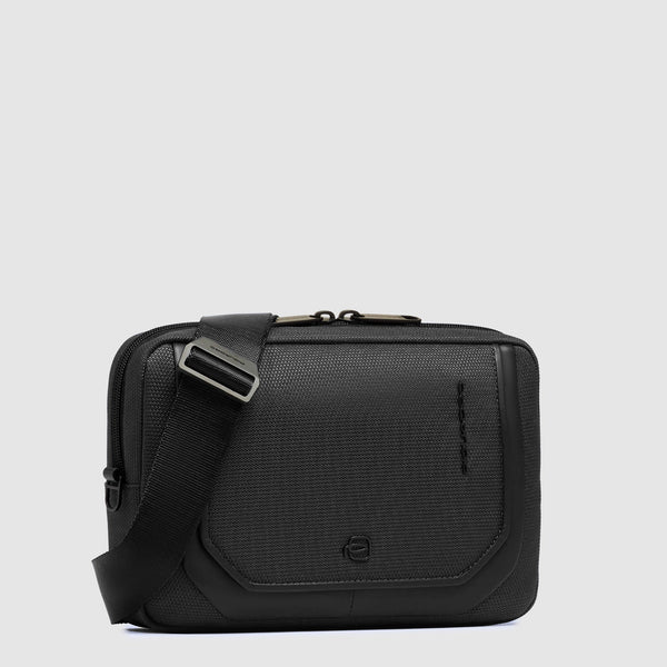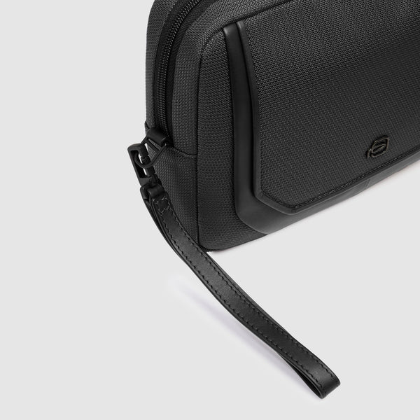 Pochette uomo in tessuto riciclato e pelle con polsiera e tracolla rimovibili