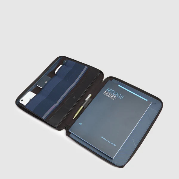 Portablocco in tessuto riciclato e pelle con scomparto per iPad®, porta penne e tasca per AirPods®