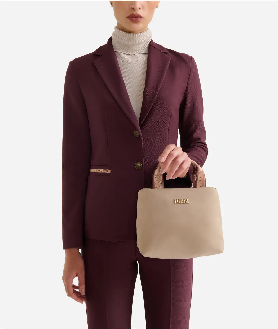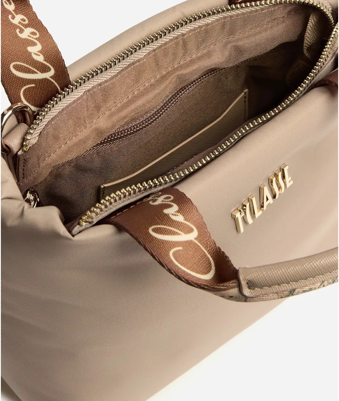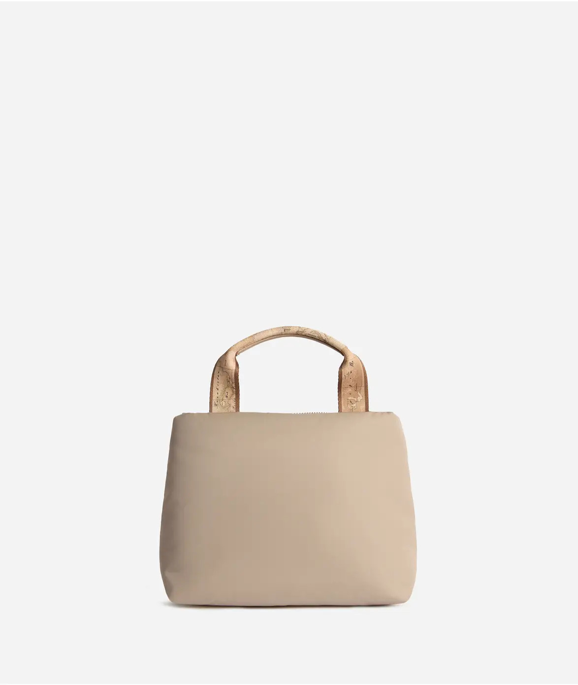 La borsa a mano piccola Puffy Nylon interpreta l'amato nylon riciclato nella sua nuovissima variante imbottita, combinando lo spirito green con un look di grande tendenza. I manici ripiegati sfoggiano la stampa Geo Classic e presentano inserti in tessuto saffiano per una portabilità confortevole, mentre la tracolla regolabile e rimovibile in nastro stampa double-face consente anche la portabilità crossbody