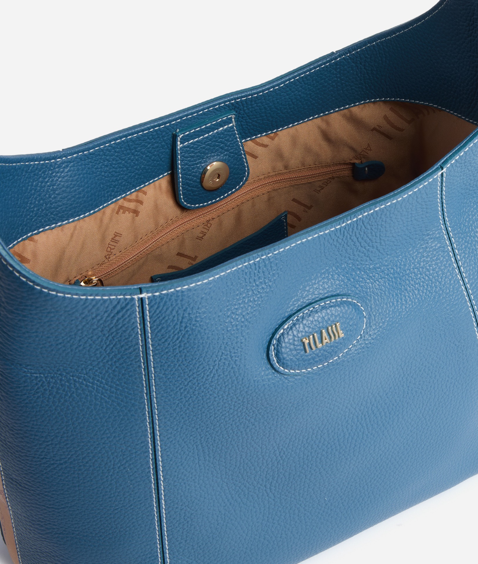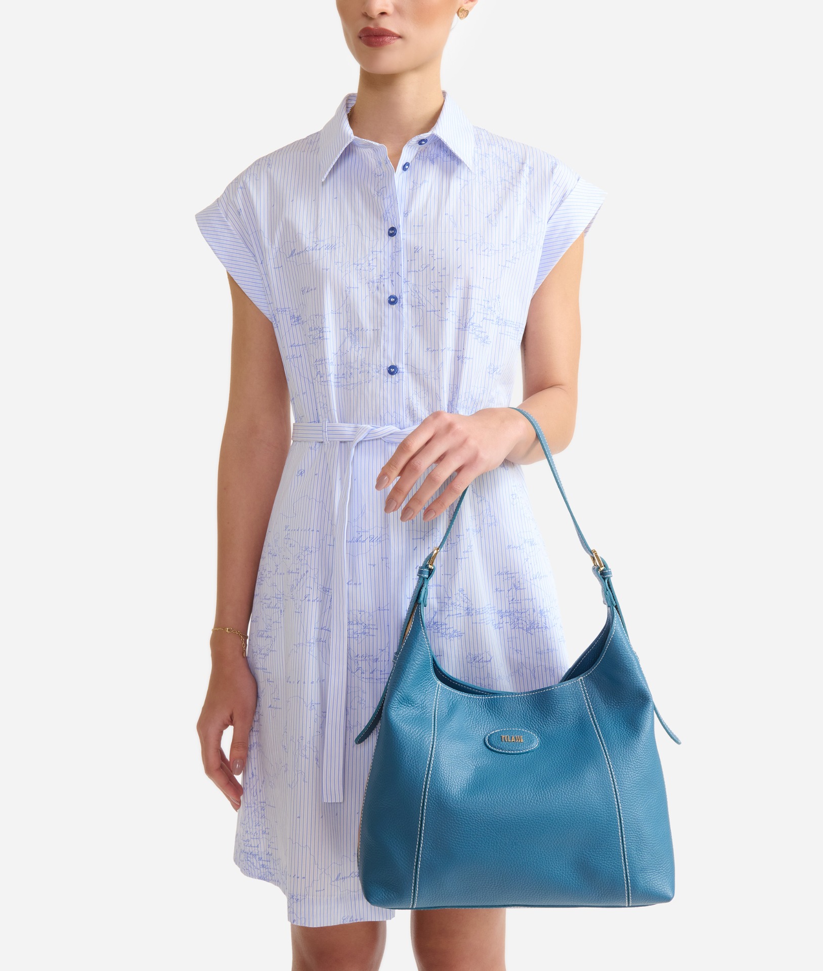 La Linea Rodeo Leather introduce un nuovo modello di sottospalla in soffice pelle granata, dal volume morbido definito da tagli accostati con cuciture a contrasto. I fianchi sono delineati dagli inserti in nappa stampa Geo Classic per una personalizzazione discreta ma riconoscibile, mentre il fronte è arricchito dalla toppa in pelle bombé con logo 1ᴬ Classe in oro chiaro. Il modello è ampio e capiente, provvisto di chiusura a magnete e di spallaccio regolabile per una portabilità versatile. Una borsa dall'attitude rilassata e al contempo rifinita, perfetta per valorizzare i denim grazie alla tonalità Blu Pacifico.