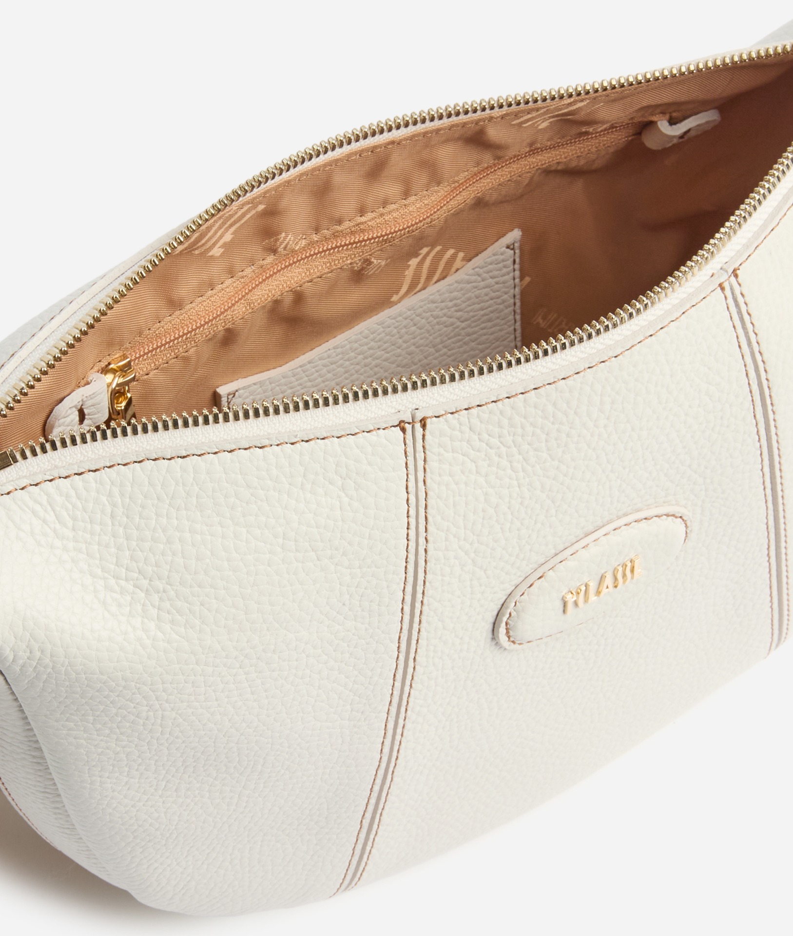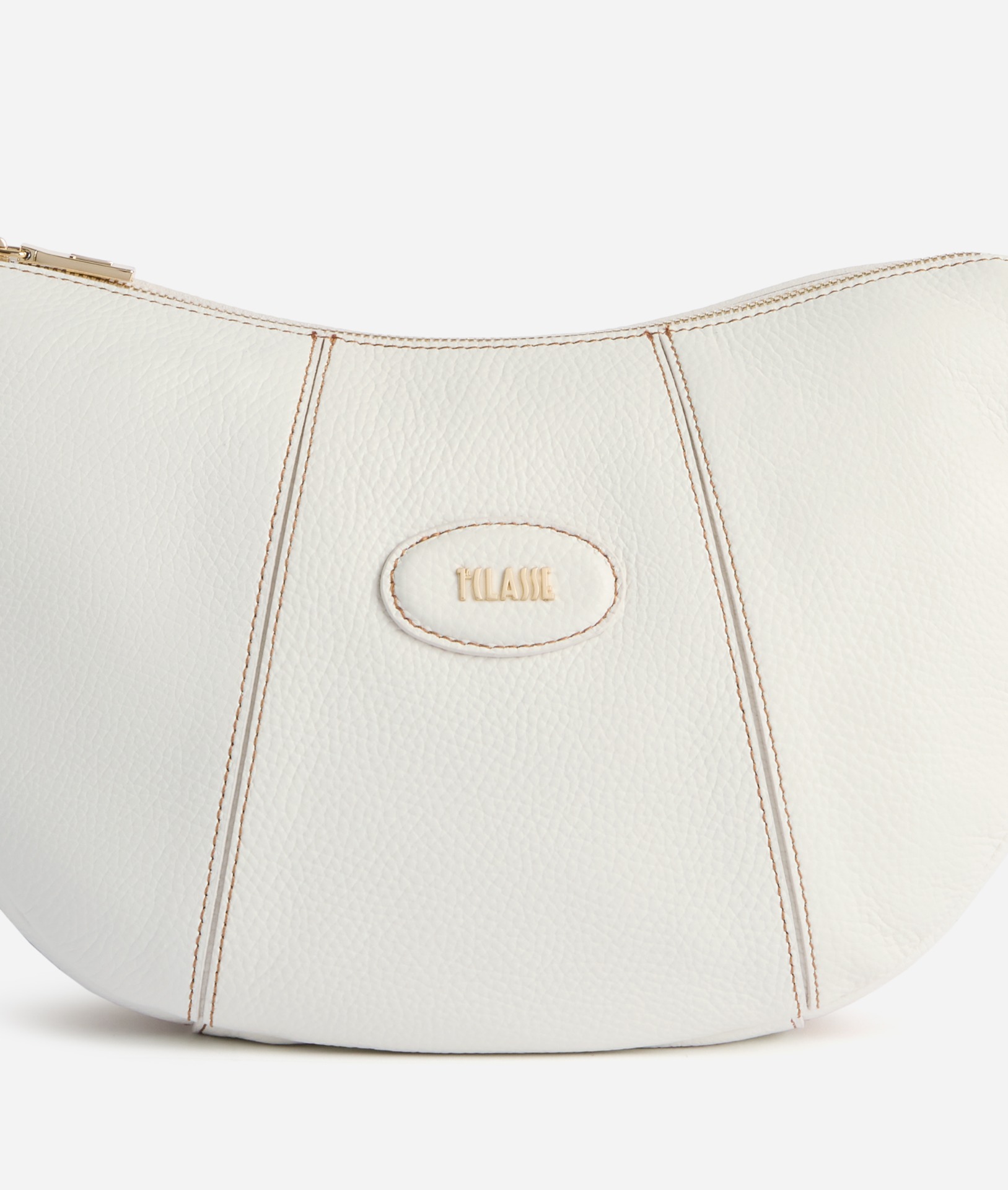La tracolla a mezzaluna Rodeo Leather valorizza la soffice pelle granata con tagli accostati e cuciture a contrasto, che insieme agli inserti in nappa stampa Geo Classic sui lati creano un'estetica minimal e sofisticata. La tracolla in nastro con mappa Geo su un lato e stampa logata sull'altro consente una portabilità ampiamente regolabile, mentre la toppa bombé con logo 1ᴬ Classe in oro chiaro rifinisce il design. Morbida, capiente e accattivante, è perfetta per impreziosire gli outfit casual con un tocco pellettiero.