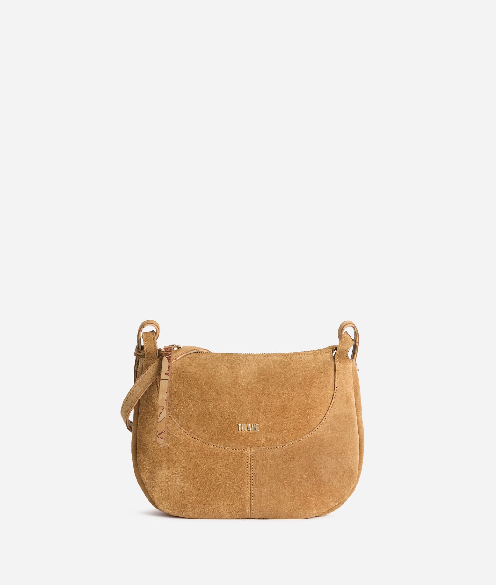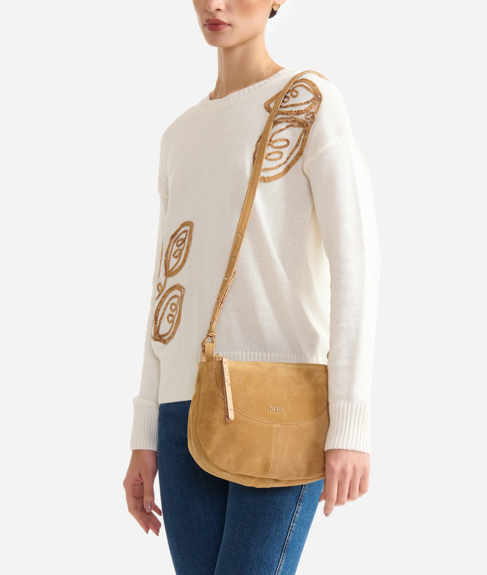 • Tracolla regolabile in pelle scamosciata con un lato in tessuto effetto nappa stampa Geo Classic