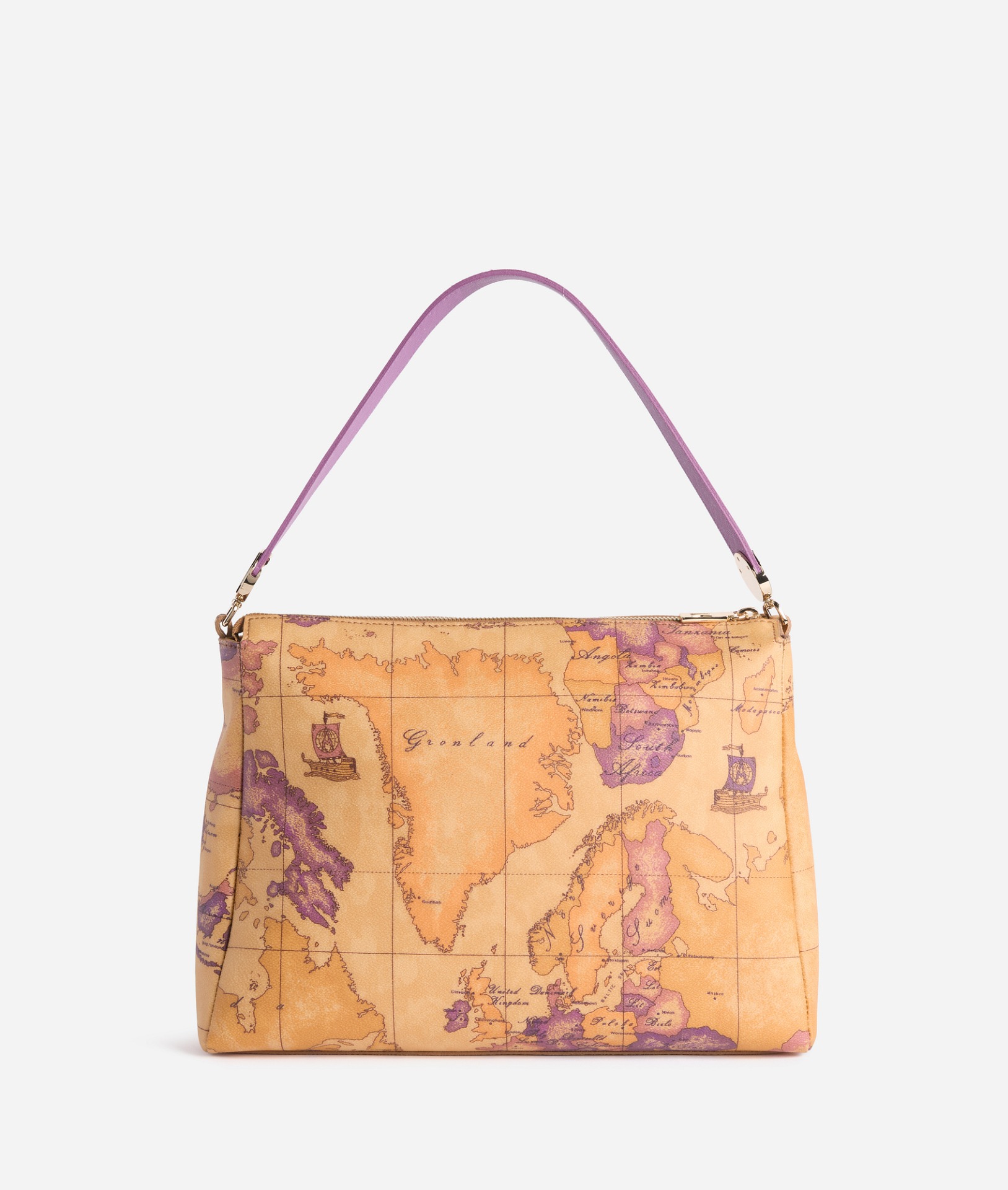 • Tracolla regolabile e rimovibile in tessuto goffrato stampa saffiano
