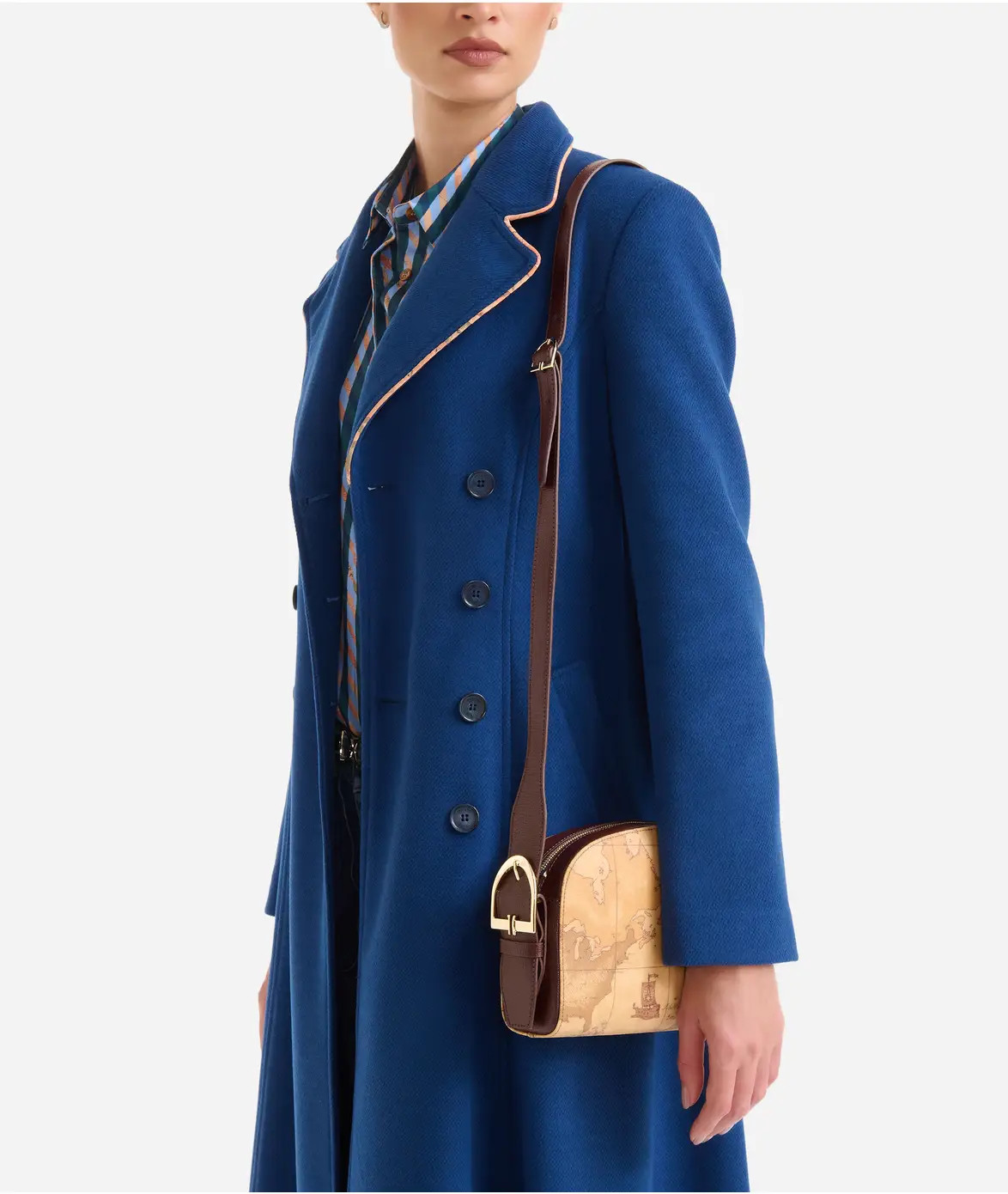 • Tracolla regolabile in pelle granata fine con maxi fibbia logata 1C in oro chiaro protetto