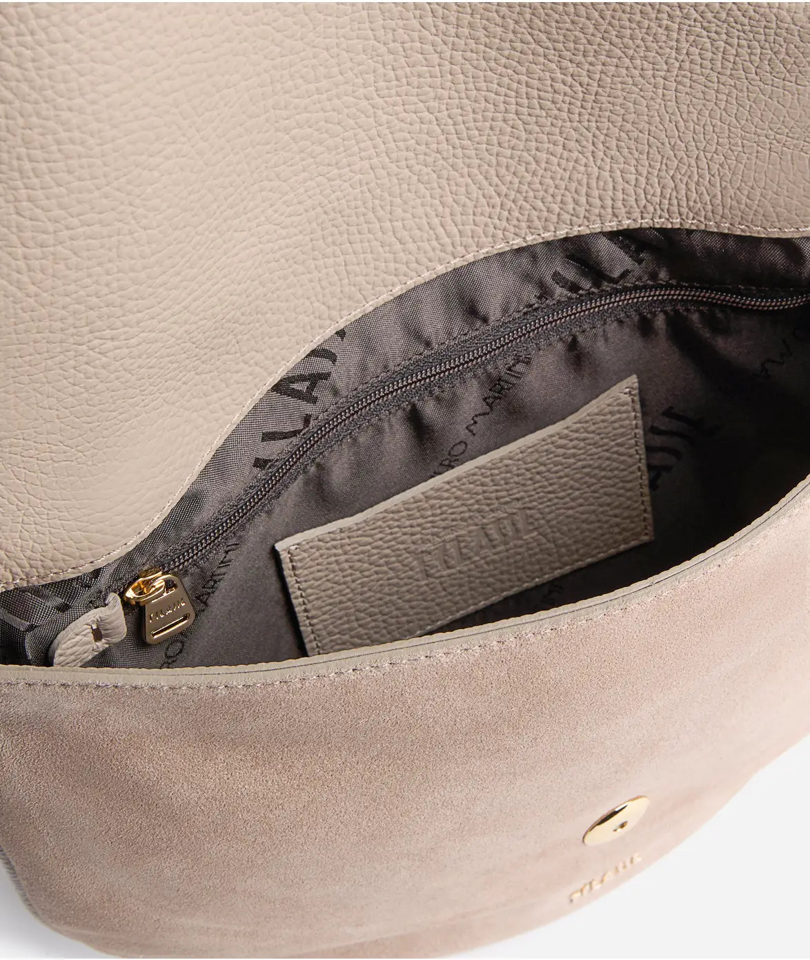 Morbida e capiente, la sottospalla Wild Leather sfoggia una raffinata combinazione di pelle scamosciata e pelle granata che interpreta i diversi paesaggi della Scozia. La particolarità del modello è nella patta, che chiude con un magnete lo scomparto principale: la patta stessa si apre tramite una zip, arricchita dal lungo tiralampo con stampa Geo Classic, consentendo l'accesso al vano posteriore. Il logo 1ᴬ Classe in oro chiaro impreziosisce ulteriormente il modello, completo di spallaccio e tracolla rimovibili con dettagli in stampa Geo Classic.