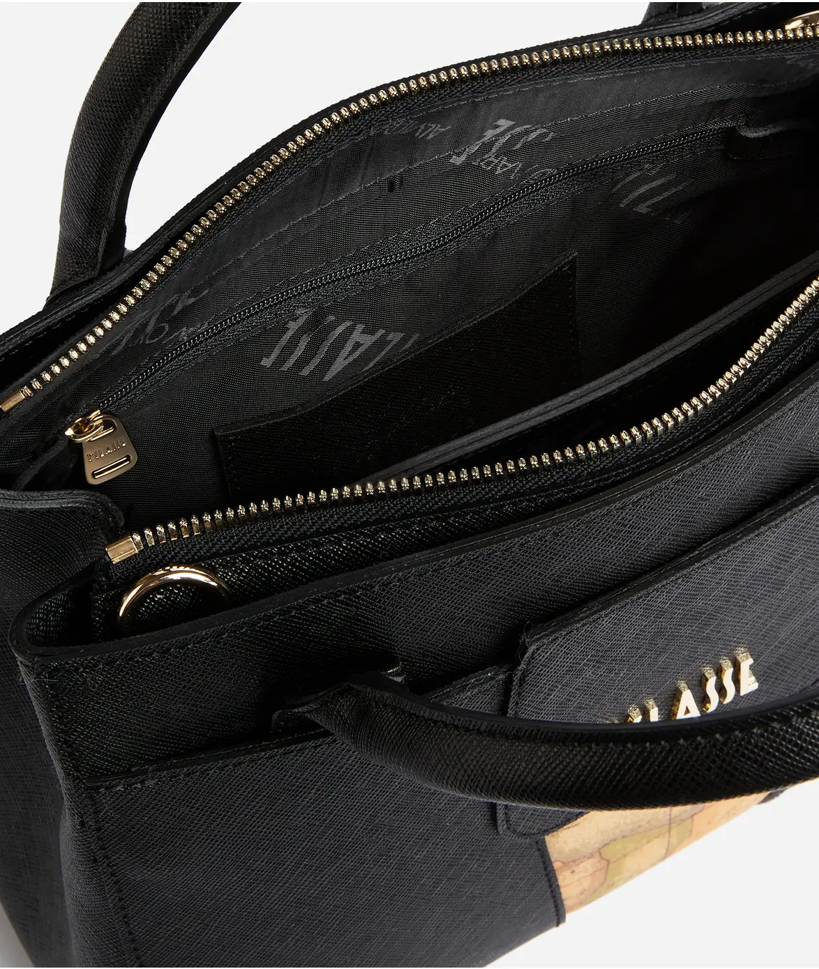 - Borsa a mano piccola con tracolla in tessuto goffrato stampa saffiano