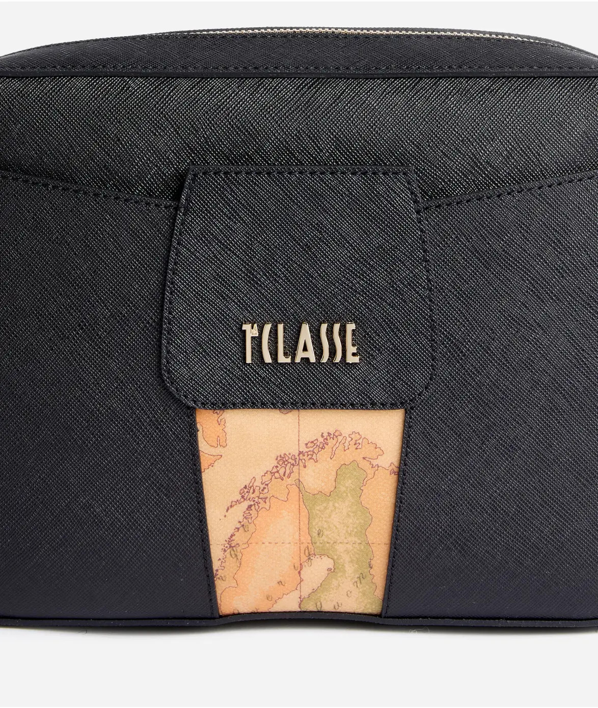 - Tracolla reporter in tessuto goffrato stampa saffiano