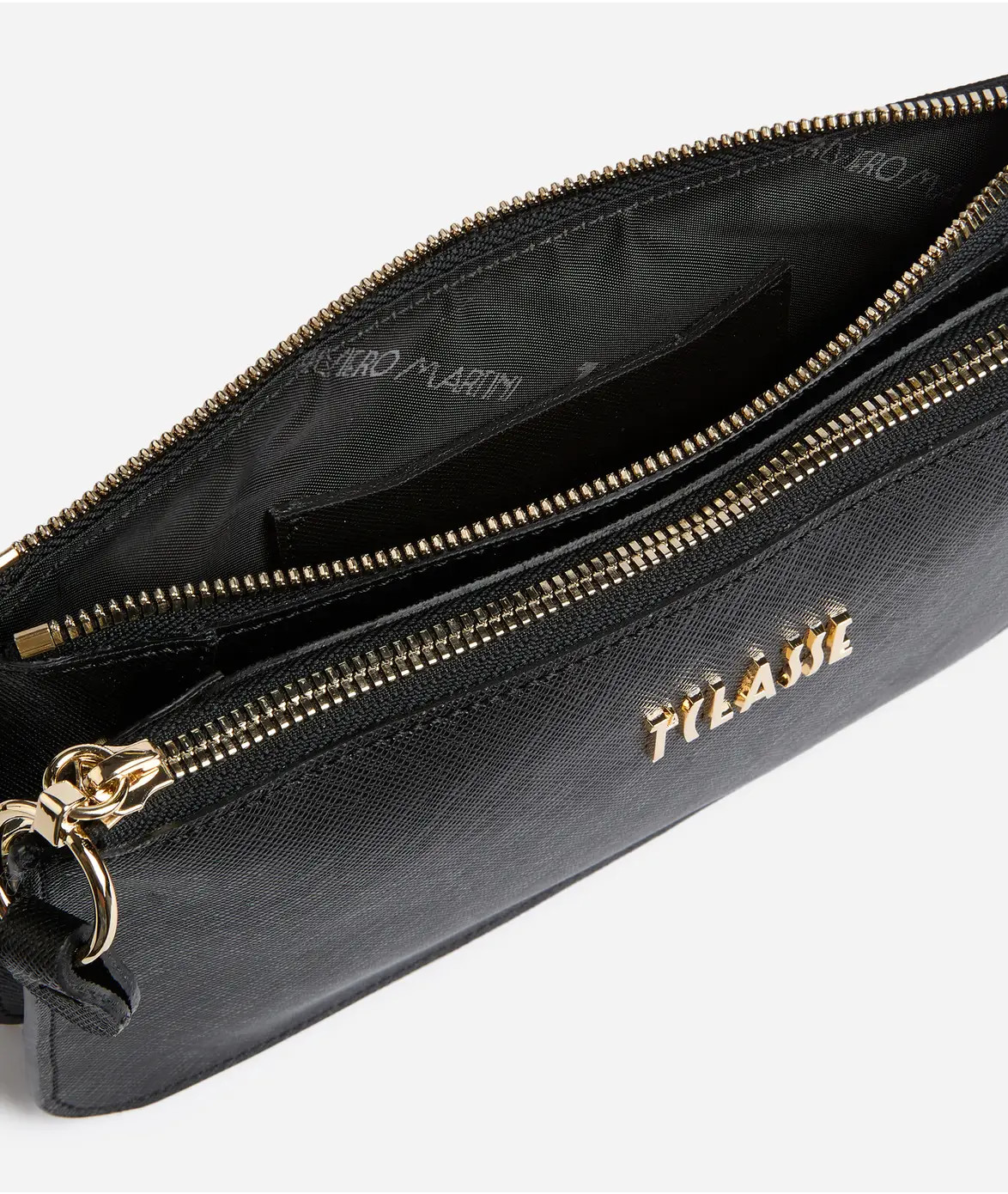 • Tracollina a due scomparti in tessuto goffrato stampa saffiano