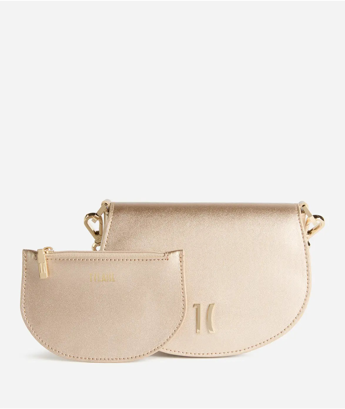 Design minimal e linee arrotondate sono i segni distintivi della tracollina Winter Lux, realizzata in pelle liscia laminata e illuminata dal maxi logo 1C in oro chiaro. La tracolla regolabile e rimovibile sfoggia la stampa Geo Classic sull'esterno e il logo 1ᴬ Classe in corsivo sull'interno. Il volume compatto è completato da una bustina interna in pelle, per tenere organizzato tutto il contenuto